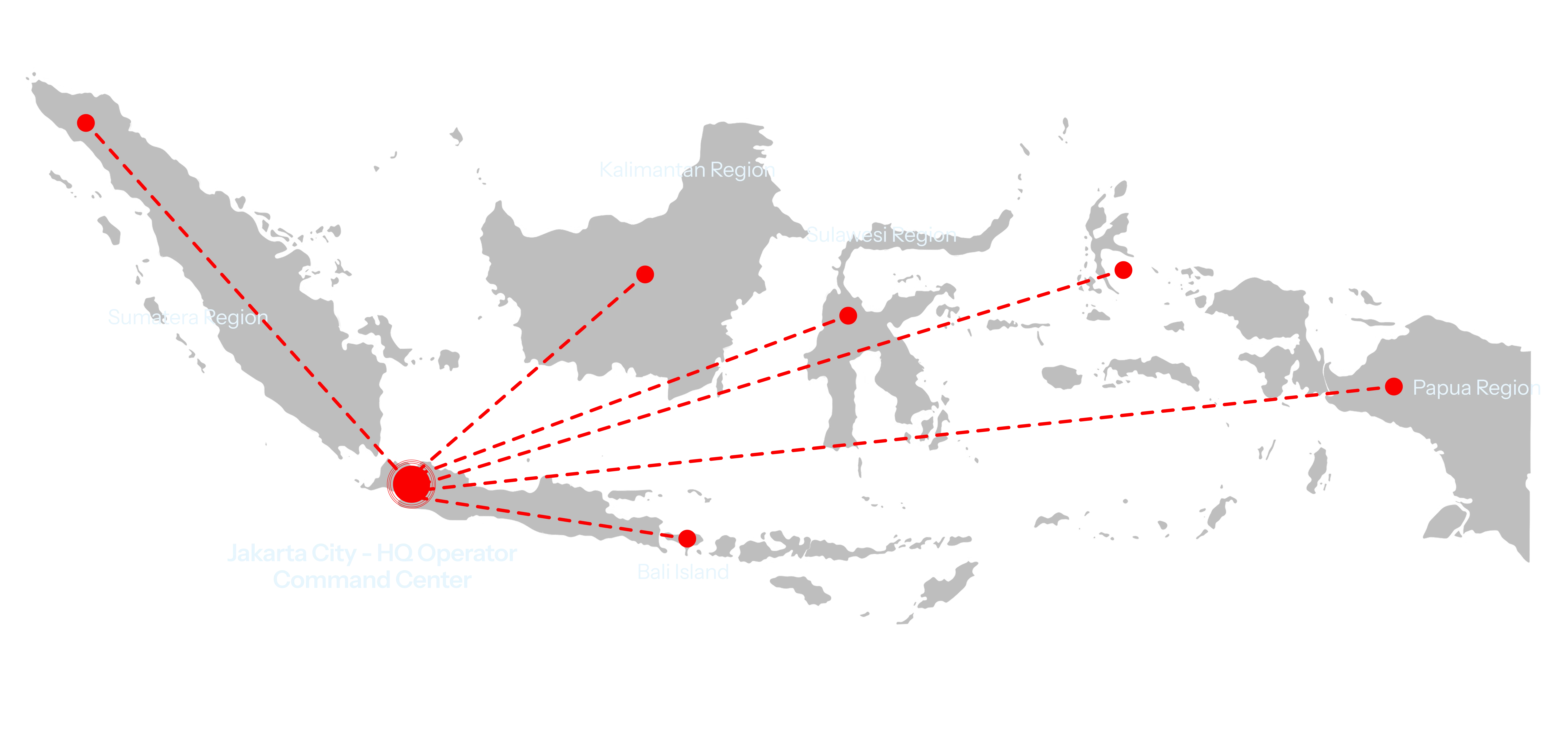 Sumatera, Kalimantan, Sulawesi, Papua and Bali coordinated from our Jakarta Command Center.